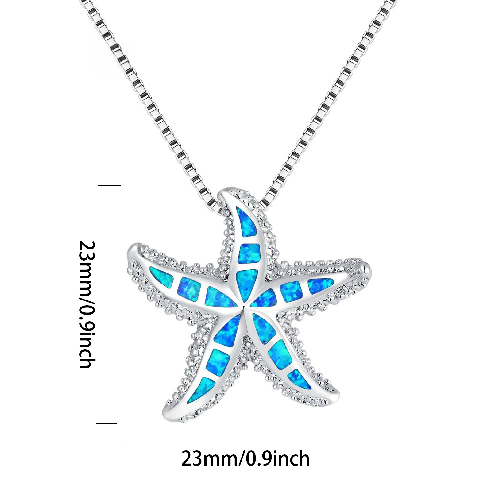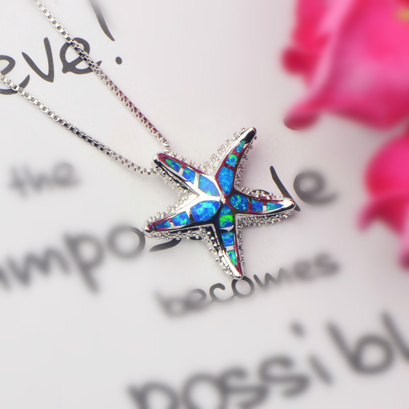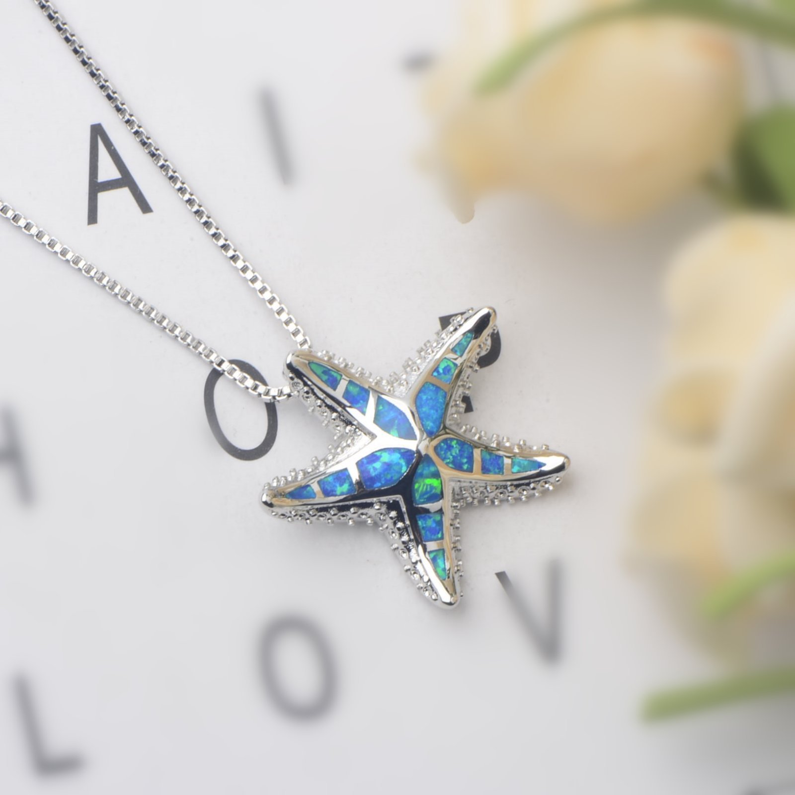 Dive into ocean-inspired elegance with our Popular Blue Opal Starfish Necklace Pendant Ornaments.