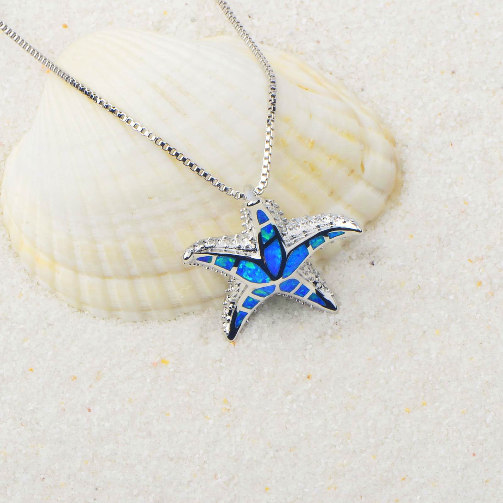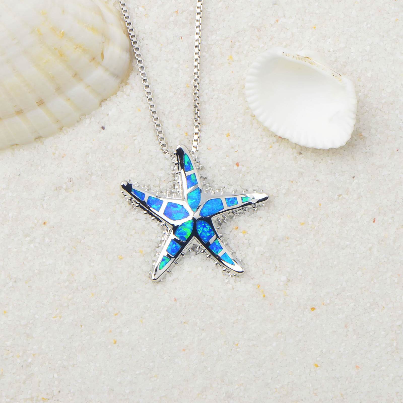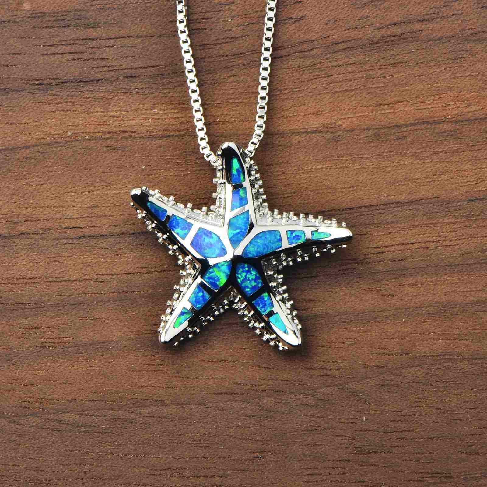 Dive into ocean-inspired elegance with our Popular Blue Opal Starfish Necklace Pendant Ornaments.